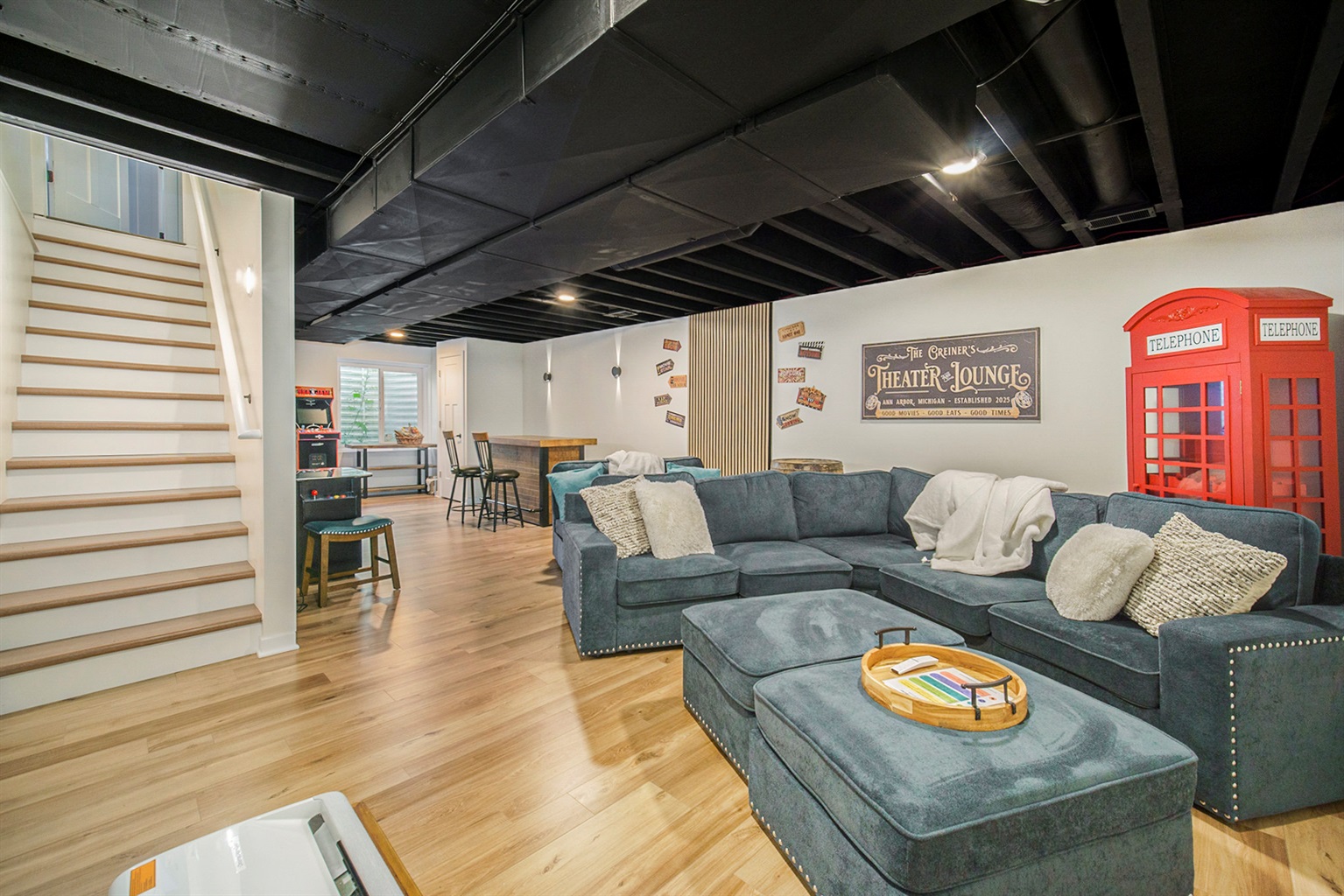 Come down to the basement to discover the Home Theater, Watch the game with family, or immerse yourselves in a Hollywood Blockbuster
