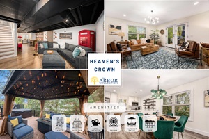 8 Bedrooms • 6 Bathrooms (5 full, 1 half) 6 Baths (5 full, 1 half) • Sleeps 14-24Welcome to Heaven's Crown by The Arbor Collection. This stunning 8BR 5.5Bath property that can easily accommodate up to 24 guests. Settle in two houses before gathering to create unforgettable moments just a short walk away from downtown and many local attractions.