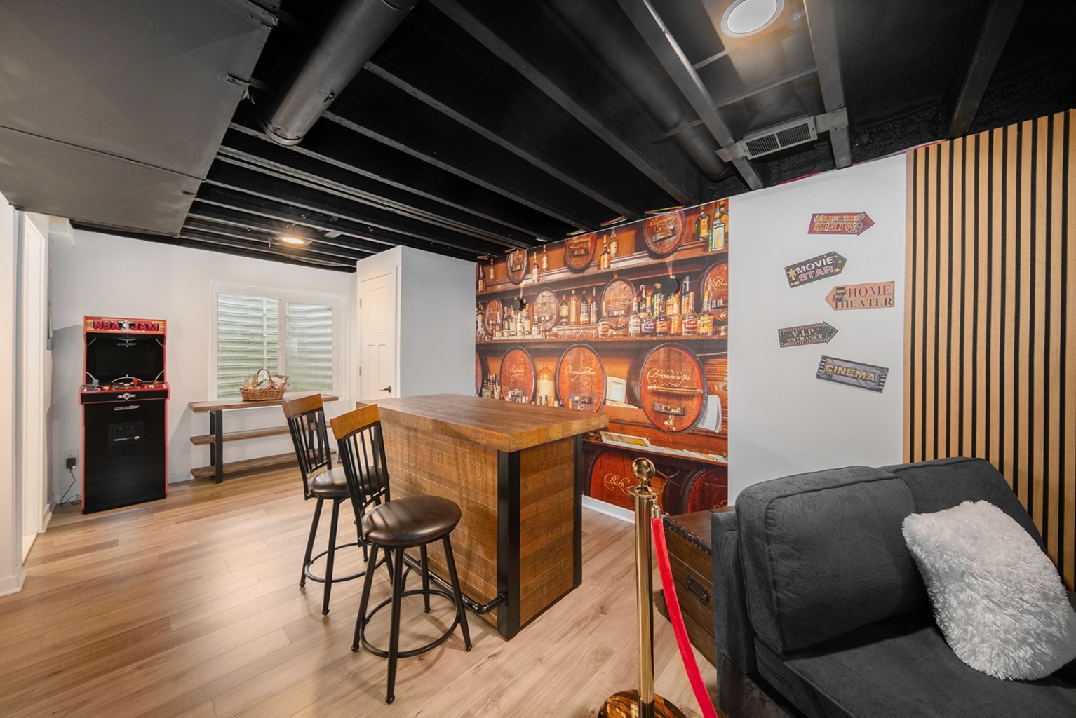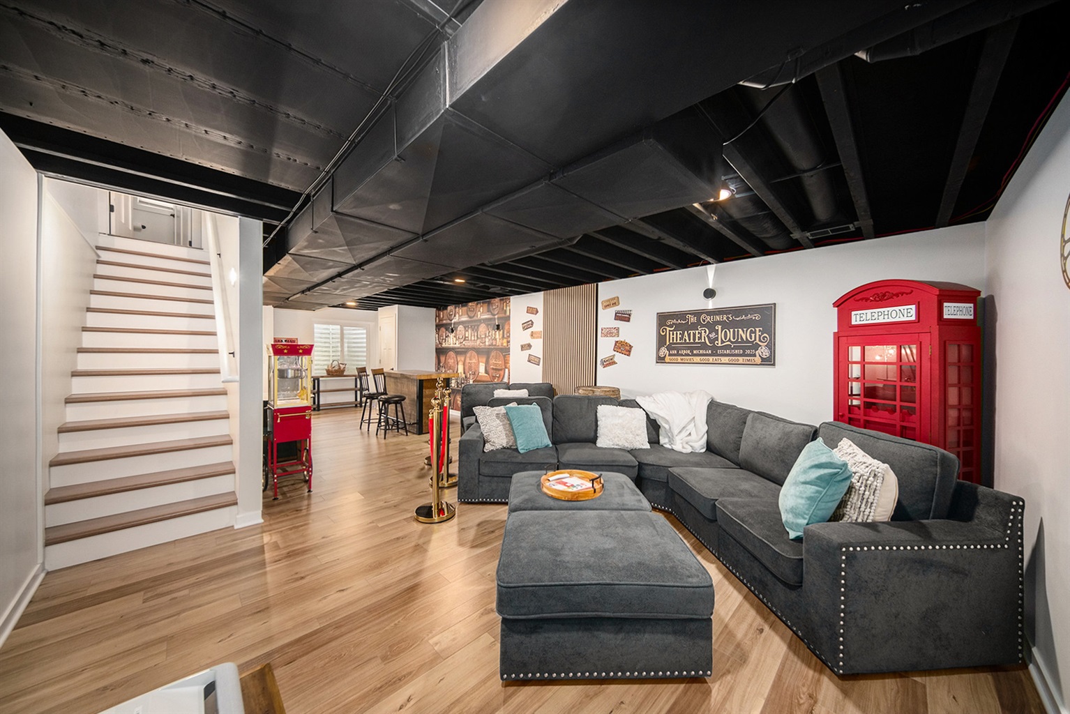 Come down to the basement to discover the Home Theater, Watch the game with family, or immerse yourselves in a Hollywood Blockbuster