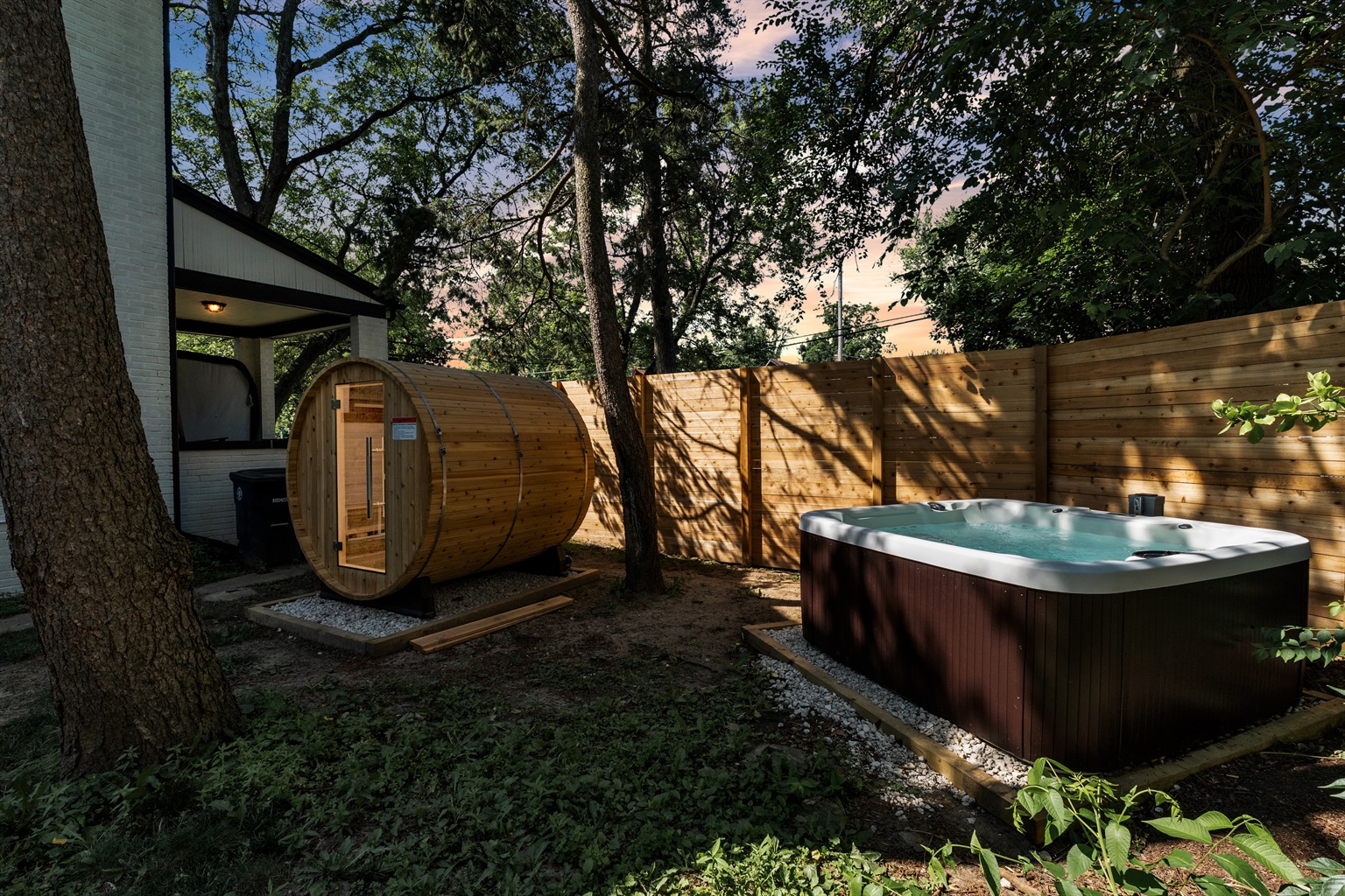 Let's leave the interior for a moment and step into the outdoor area designed to bring everyone together! Hop in one of 2 luxurious hot tubs or unwind in a sauna, prepare tasty treats on the BBQ, play games, and much more in this breathtaking private yard.