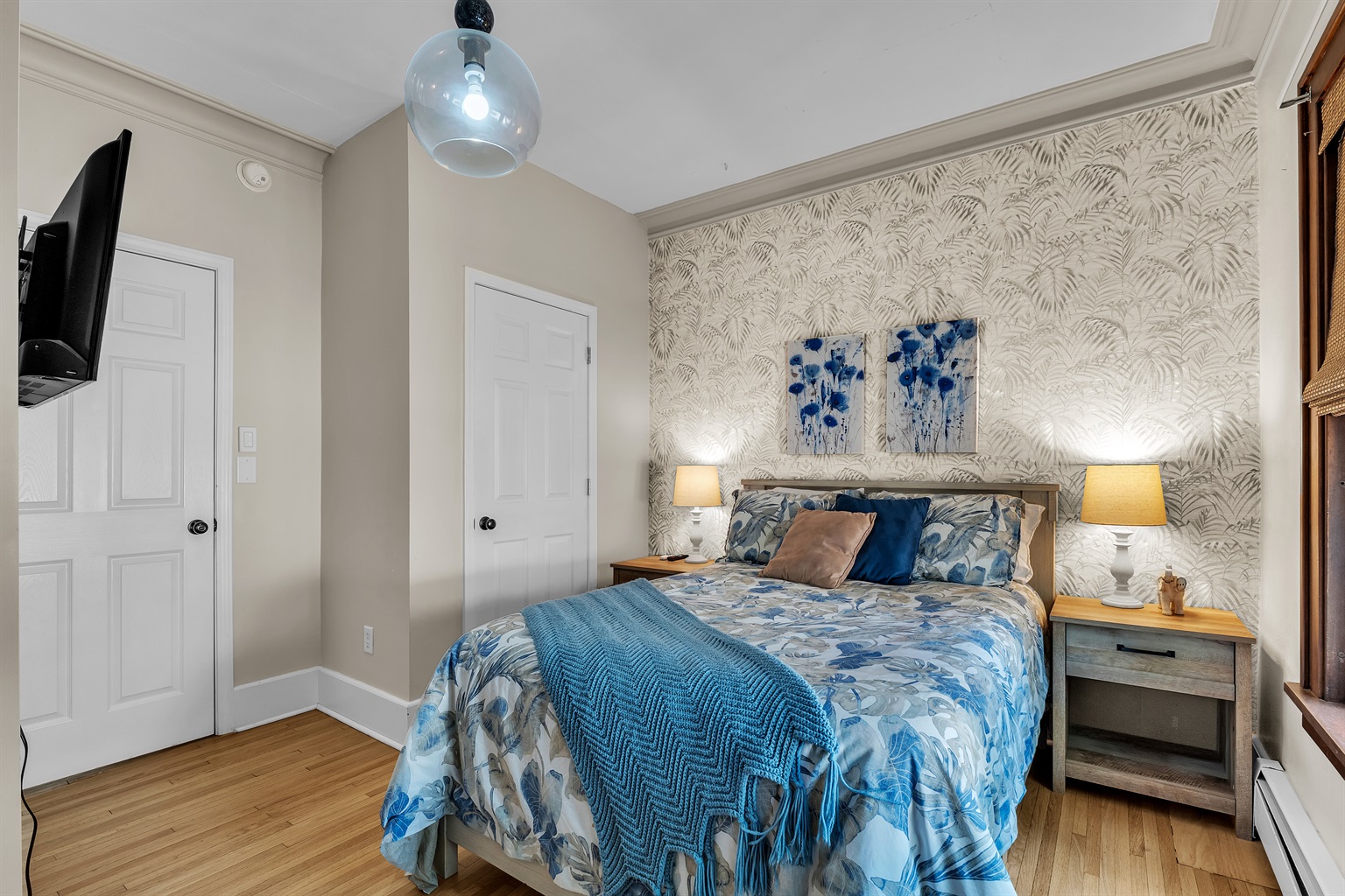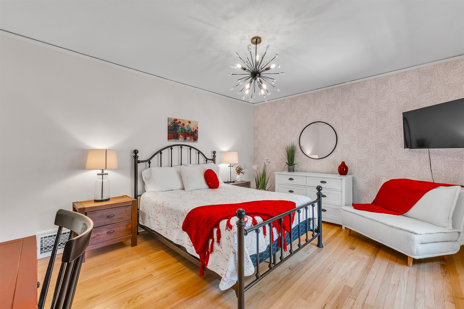 ♛ Bedroom 1: Queen Bed, Single Sleeper Chair Bed