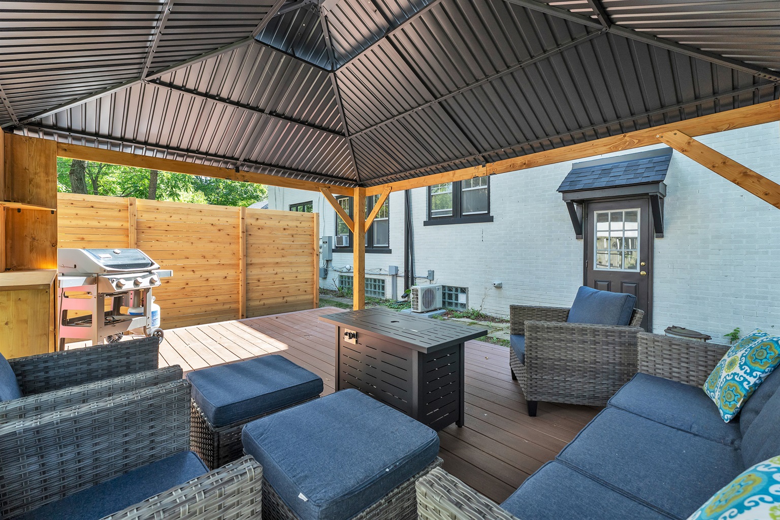 Even though the picturesque Burns Park is just a few steps away, you'll spend many relaxing and entertaining moments in the spacious outdoor area.