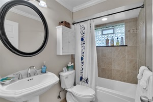 The house features two full bathrooms and an inviting half bath thoughtfully supplied with essentials and fresh towels for maximum convenience and comfort.