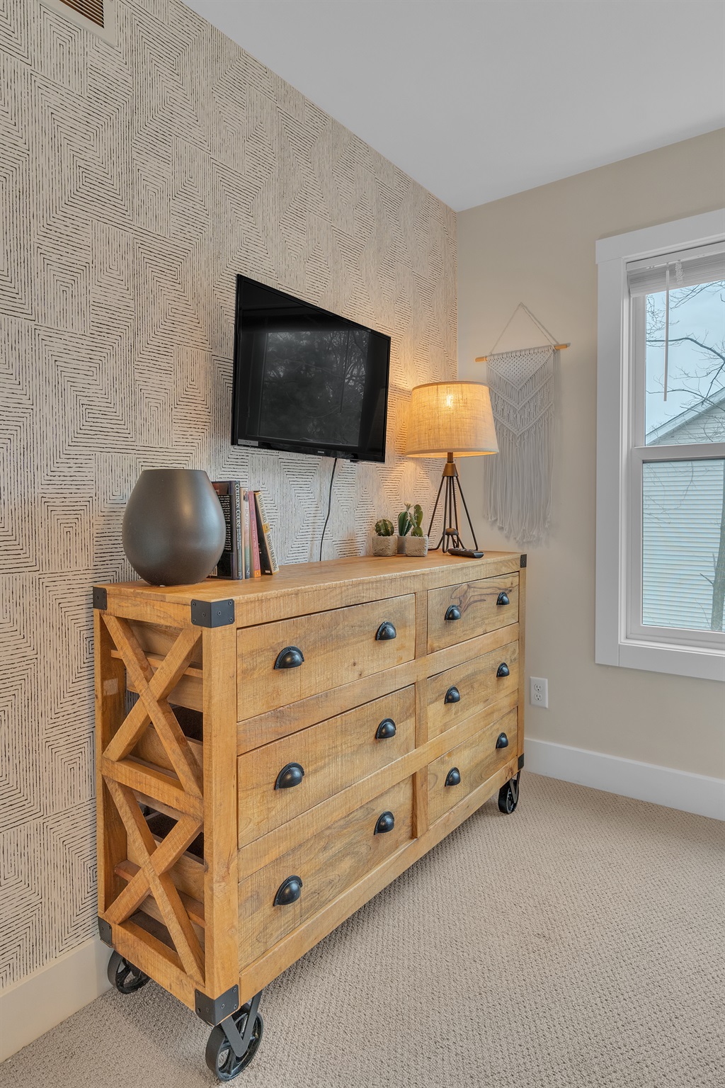 The contemporary house features three welcoming bathrooms and a convenient half bath on the main floor. All are stocked with everyday essentials, ensuring your stay is as relaxing and carefree as can be.