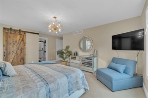♛ Bedroom 1: King-Size Bed + Single Sleeper Chair, Ensuite Bathroom
